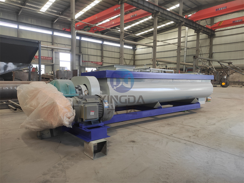 双轴搅拌机是整套有机肥生产线中的一款有机肥搅拌设备。在有机肥生产线中担当起到搅拌物料的作用。双轴搅拌机利用两根呈对称状的螺旋轴的同步旋转,双轴搅拌机内装有旋转反向的浆叶,浆叶成一定角度将物料沿轴向、径向循环翻搅,使物料迅速混合均匀。由电机通过皮带传动到减速机带动轴旋转。轴的速度与桨叶的结构会使物料重力减弱,随着重力的缺乏,各物料存在的颗粒大小、比重悬殊的差异在混合过程中被忽略。即使物料有比重、粒径的差异,在交错布置的搅拌叶片快速剧烈的翻腾抛洒下,也能达到很好的混合效果。该系列混合机是我公司研制的新一代混合设备,该机混合度高,残留量少,适合于两种以上肥料,添加剂预混料得混合,及配合饲料、浓缩饲料、添加剂预混饲料等的混合。
